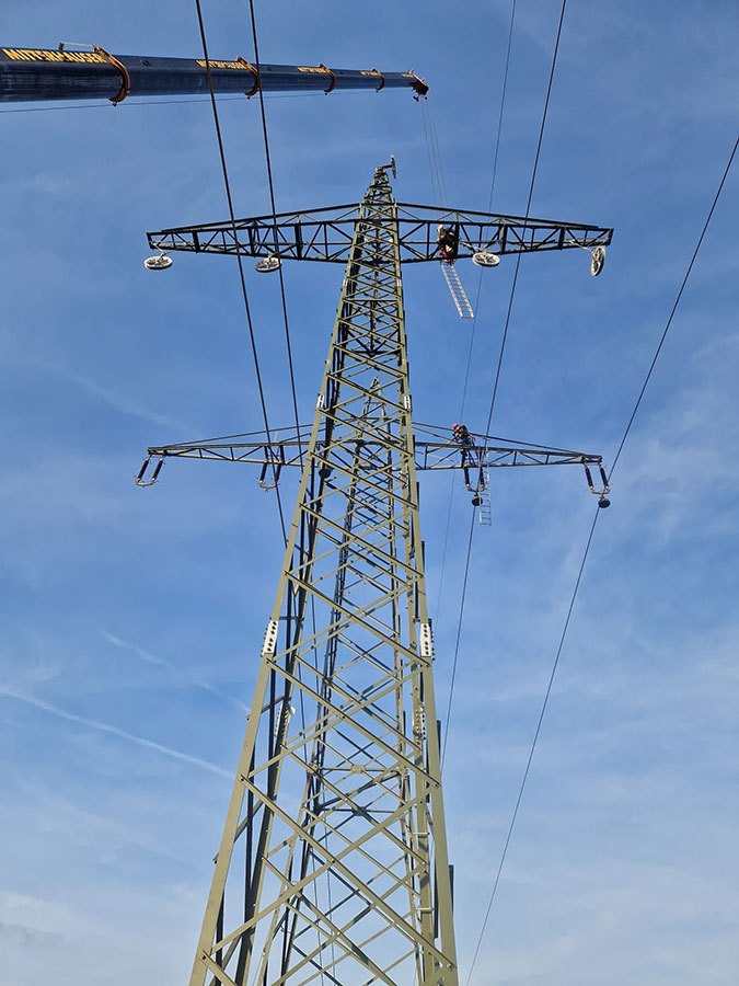 Posilňovanie konštrukcií stožiarov a výmena izolátorových závesov a tlmičov pre prevádzku.