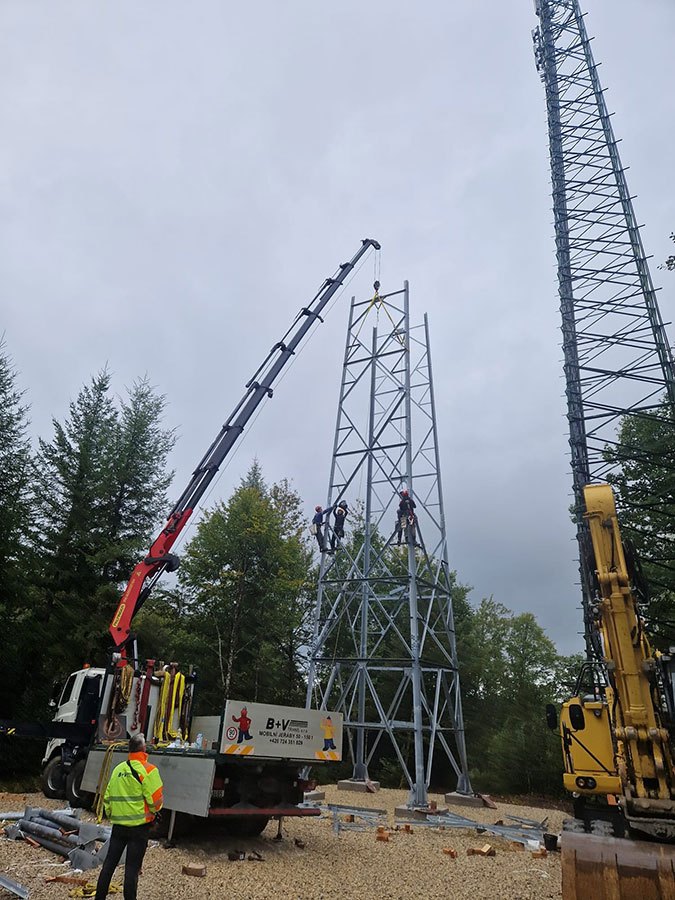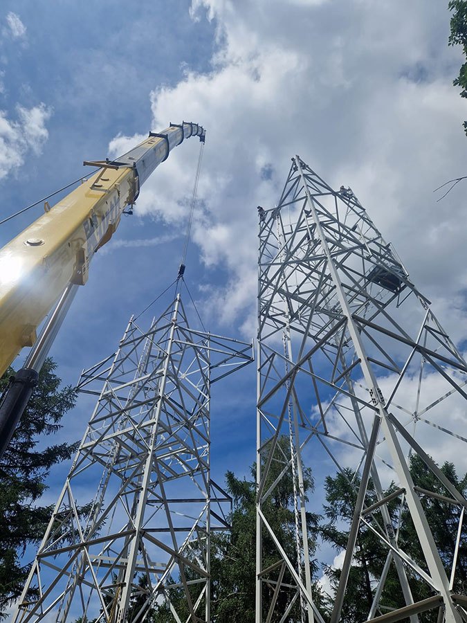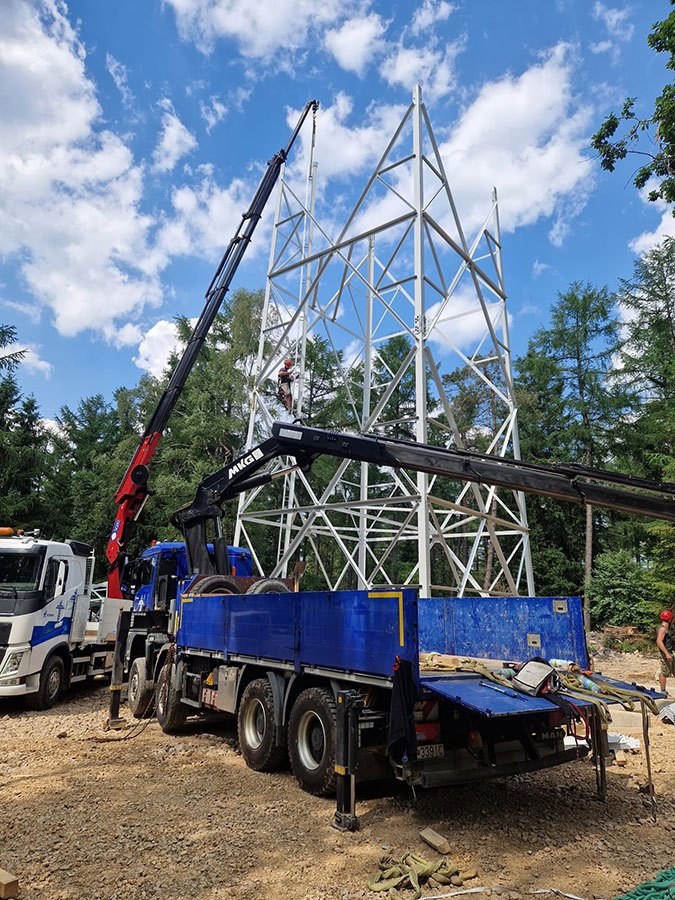 Predmontáž a stavba stožiarov VVN, ZVN a stožiarov mobilných operátorov žeriavmi.