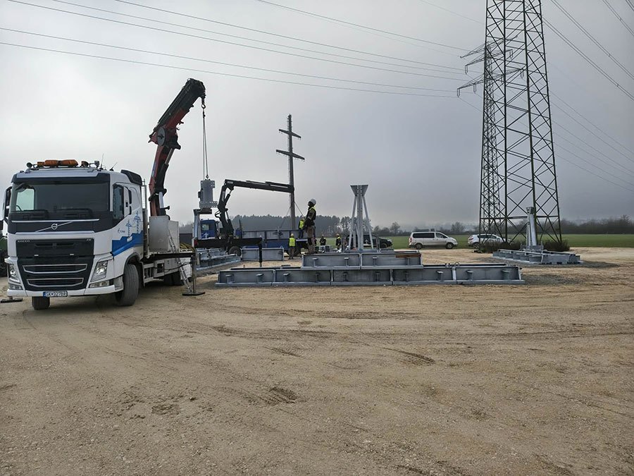 Predmontáž, montáž a vztyčovanie stožiarov VVN a ZVN pomocou žeriavov