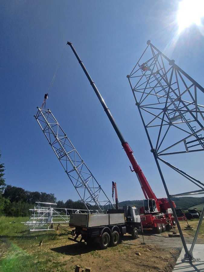 Predmontáž a stavba stožiarov VVN, ZVN a stožiarov mobilných operátorov žeriavmi.