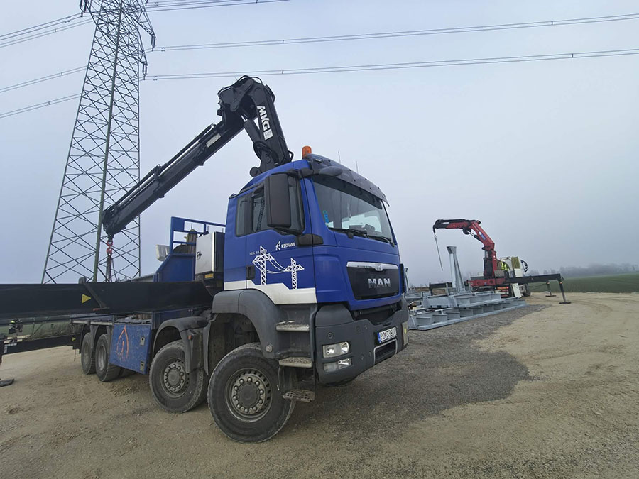 Predmontáž, montáž a vztyčovanie stožiarov VVN a ZVN pomocou žeriavov